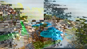 The 5 star accommodation Crystal Aura is located next to the private pebble beach. The nearest bars and restaurants can be found at a distance of around 500 m. The old town is around 33 km away. The nearest shops you can reach within around 500 m, a The 5 star accommodation Crystal Aura is located next to the private pebble beach. The nearest bars and restaurants can be found at a distance of around 500 m. The old town is around 33 km away. The nearest shops you can reach within around 500 m, a supermarket is around 1,4 km away. The beach is patrolled by a lifeguard and awarded a blue flag. On the beach there is also a clubhouse. Here, there are sun loungers, cushions, sun umbrellas and beach towels available. Cold drinks are served at the beach bar. The seasonally air-conditioned, GPS-verified halal hotel has a 24h reception, a lobby bar, Wi-Fi, internet access, 9 lifts, a supermarket and other shops, a hairdresser, showers and changing rooms, a first aid kit, parking spaces (limited) as well as a TV lounge with satellite TV. In the outdoor area of the property you will find a garden as well as a supervised pool (open from April to November) with clubhouse, where sun loungers, sun umbrellas and pool towels are available for free. There is also a separate and an integrated children's pool with 6 water slides (type twister/open slide/tunnel slide). Furthermore, outside you can find a roof terrace. Inside the hotel you can use an indoor pool. You can store your valuables in the safe, and your luggage in the hotel`s storage room. In addition, the hotel Crystal Aura is video-monitored 24h a day. For your entertainment, the hotel offers a theatre and a disco. For the young hotel guests there is a playground. For very young guests, kid`s chairs and cots can also be provided. For the smallest children prams can be rented in the hotel. There is also a laundry service available at an additional cost to customers. Ironing equipment can be rented at the hotel for a fee. For your comfort the hotel page will ensure you are looked after. If necessary, you can contact the medical centre (for a fee). Guests at the accommodation can get a wake-up call from the hotel personnel. The energy supply is 220 Volts. For conventions and other business meetings, the hotel offers an auditorium with printer, scanner as well as overhead projector. A photographer can also be ordered from the hotel for business events. For guests on their honeymoon, the hotel has special offers such as a romantically-decorated room, personalised rooms/articles, rooms with a particularly romantic location and view, romantic dishes in the restaurant, sparkling wine, a present, a basket of fruit or flowers in the room. In your hotel, a lot of focus is placed on sustainability. This includes waste segregation in the rooms, the hotel`s own recycling bins, the provision of soap and shampoo dispensers, organic food and ecological meals and a central room air-conditioning. That is why the hotel Crystal Aura was also awarded a sustainability certificate. American Express, Euro/Master Card, Visa and EC cards are accepted as means of payment. Due to its barrier-free facilities , such as a revolving door in the entrance area, a sliding door in the entrance area, an automatic hotel door, a hotel door that can be opened manually, barrier-free entrances, wheelchair accessible rooms, a wheelchair accessible lift, a handrail in the elevator and wheelchair-accessible bathrooms, the hotel is also suitable for wheelchair users.