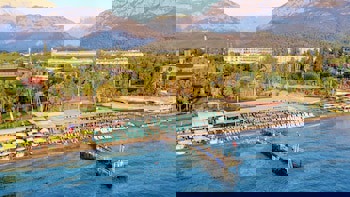 About 150 m from a pebble beach is located the accommodation Crystal De Luxe. The nearest restaurants and bars can be found within 300 m. The old town is around 8 km away. The nearest shops you can reach within around 300 m, a supermarket is around 5About 150 m from a pebble beach is located the accommodation Crystal De Luxe. The nearest restaurants and bars can be found within 300 m. The old town is around 8 km away. The nearest shops you can reach within around 300 m, a supermarket is around 500 m away. Nearby there is a disco which offers entertainment in high season. The beach is patrolled by a lifeguard and awarded a blue flag. Here, there are cushions, sun umbrellas and beach towels available. Cold drinks are served at the bar on the beach. There is a promenade where you can take leisurely walks. The seasonally air-conditioned, GPS-verified halal hotel has a 24h reception (check-in is possible around the clock), a lobby bar, Wi-Fi, internet access, 3 lifts, a supermarket and other shops, a hairdresser, a jacuzzi, showers and changing rooms, a first aid kit, parking spaces (limited) as well as a TV lounge with satellite TV. Outside there are 4 separate and integrated children's pools with 3 water slides (type open slide) as well as 3 children`s slides, where sun loungers, sun umbrellas and pool towels are available for free. Furthermore, you can relax outdoors on the terrace and in the garden. Inside the hotel you can use a heated indoor pool. Your valuables can be stored in the hotel safe. In addition, the hotel Crystal De Luxe is video-monitored 24h a day. For your entertainment, the hotel offers a cinema and a disco. For the young hotel guests there is a playground. For very young guests, kid`s chairs, highchairs and cots can also be provided. For the smallest children prams can be rented in the hotel. There is also a laundry service. Ironing equipment can be borrowed at the hotel. For your comfort the hotel page will ensure you are looked after. If necessary, you can contact the medical centre at any time. Guests at the accommodation can get a wake-up call from the hotel personnel. The energy supply is 220 Volts. For conventions and other business meetings, the hotel offers a (auditorium-style) conference area with a total of 300 seats, printer, scanner as well as internet access. A photographer can also be ordered from the hotel for business events. If you want to explore the holiday region, you can use the car rental service close to the hotel (extra fee). For guests on their honeymoon, the hotel has special offers such as a romantically-decorated room, rooms with a particularly romantic location and view, special honeymoon packages, sparkling wine, a present or a basket of fruit in the room. In your hotel, a lot of focus is placed on sustainability. This includes the hotel`s own recycling bins, the provision of soap and shampoo dispensers, organic food and ecological meals and environmentally-friendly cleaning. That is why the hotel Crystal De Luxe was also awarded a sustainability certificate. American Express, Euro/Master Card, Visa and EC cards are accepted as means of payment. Due to its barrier-free facilities , such as a sliding door in the entrance area, an automatic hotel door, a hotel door that can be opened manually, separate, barrier-free entrances, wheelchair accessible rooms, a wheelchair accessible lift, a handrail in the elevator and wheelchair-accessible bathrooms, the hotel is also suitable for wheelchair users.